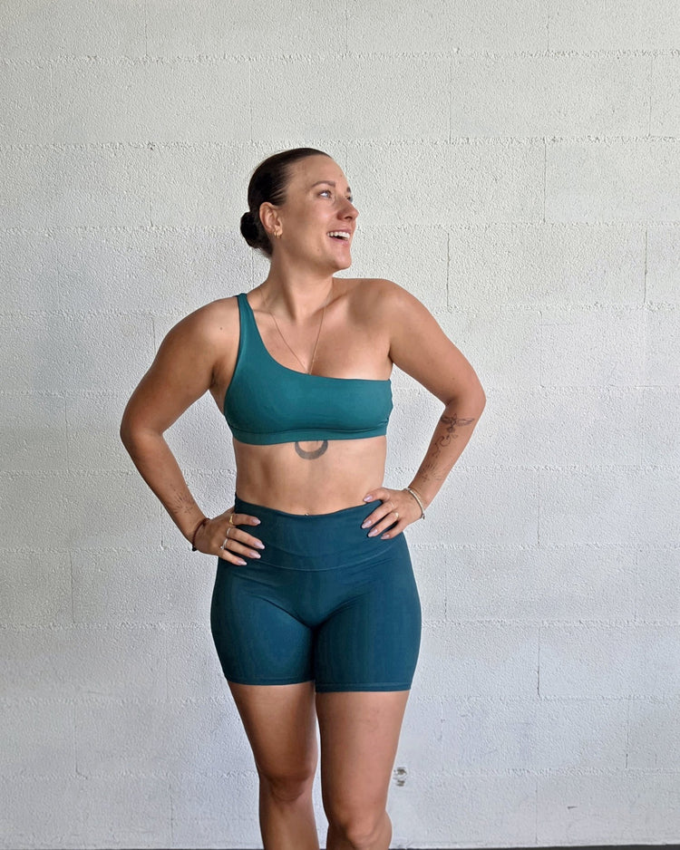 Sa matière ultra-stretch épouse les formes, sa taille haute gainante reste bien en place, et un insert discret à l’intérieur permet de glisser une clé ou une carte.